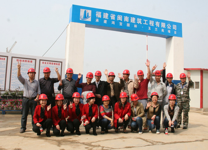 下午2:30,人員在停車場集合完畢,乘坐中巴車一起前往鴻園項目工地。鴻寶置業(yè)公司積極配合集團(tuán)參觀活動,對參觀路線及講解內(nèi)容進(jìn)行了細(xì)致的安排。集團(tuán)公司人員出發(fā)之際,置業(yè)公司的總工程師、工程管理部經(jīng)理、設(shè)計管理部經(jīng)理都已等待在建設(shè)工地的入口。集團(tuán)人員到達(dá)現(xiàn)場,領(lǐng)取了安全帽后,參觀活動正式開始。