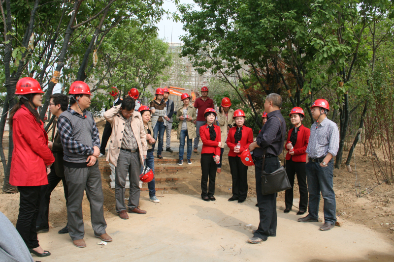 首先,置業(yè)公司總工程師張占輝結(jié)合項目工地入口處的幾幅項目效果圖,為大家講解了鴻園項目的概況及特色,又針對大家提出的問題進(jìn)行了解答。之后,大家走進(jìn)施工工地,由置業(yè)公司工程管理部經(jīng)理張艷忠?guī)ьI(lǐng)大家參觀施工現(xiàn)場,張經(jīng)理對鴻園項目的建筑特色、選用材質(zhì)、施工進(jìn)度等進(jìn)行了講解,大家饒有興致地欣賞著一棟棟風(fēng)格統(tǒng)一而又不盡相同的建筑,不知不覺間已走近了景觀示范區(qū)。置業(yè)公司設(shè)計管理部經(jīng)理付澤江帶領(lǐng)大家穿過隔離網(wǎng),走進(jìn)景觀示范區(qū),并為大家進(jìn)行了生動詳盡的講解,漫步在風(fēng)景迤邐的景觀示范區(qū),聽著付經(jīng)理對于一些景觀特色如“無邊界水景”“臻稀樹種”“原生態(tài)景觀步道”等概念的講解,大家對鴻園項目的景觀特色有了充分的認(rèn)識和體驗(yàn),流連于美景中而徜徉忘返。
