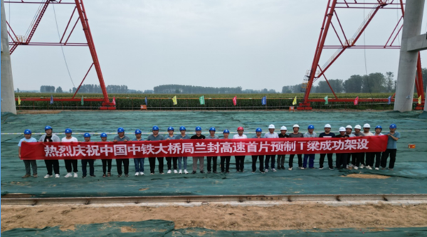 蘭封高速項目首片T梁架設成功
