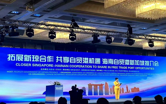 2023年11月23日下午15:00,海南省人民政府于新加坡香格里拉酒店舉辦“拓展新瓊合作 共享自貿(mào)港機(jī)遇”海南自貿(mào)港新加坡推介會(huì),會(huì)議主辦單位海南省人民政府,承辦單位海南省商務(wù)廳、海南國(guó)際經(jīng)濟(jì)發(fā)展局,協(xié)辦單位中資企業(yè)(新加坡)協(xié)會(huì)、新加坡中國(guó)商會(huì)、新加坡制作商總會(huì)。本次會(huì)議特邀鴻寶集團(tuán)海南公司參加,鴻寶集團(tuán)副董事長(zhǎng)、總裁袁曉曦,鴻寶集團(tuán)董事、海南鴻寶公司總經(jīng)理李真,海南鴻寶公司副總經(jīng)理舒舒作為代表出席會(huì)議。