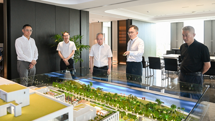 6月11日下午,??谑形睍洝⑹虚L丁暉及常務(wù)副市長鄧立松帶隊(duì)蒞臨海南鴻寶投資總部項(xiàng)目調(diào)研指導(dǎo),江東新區(qū)管理局黨委書記王明夫、局長張笑寒陪同參觀。
